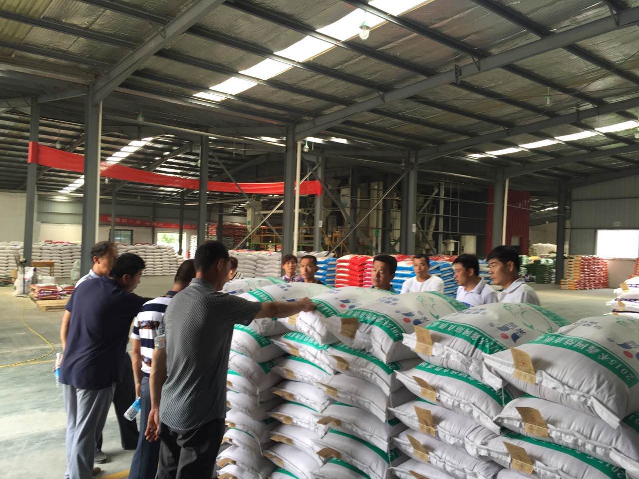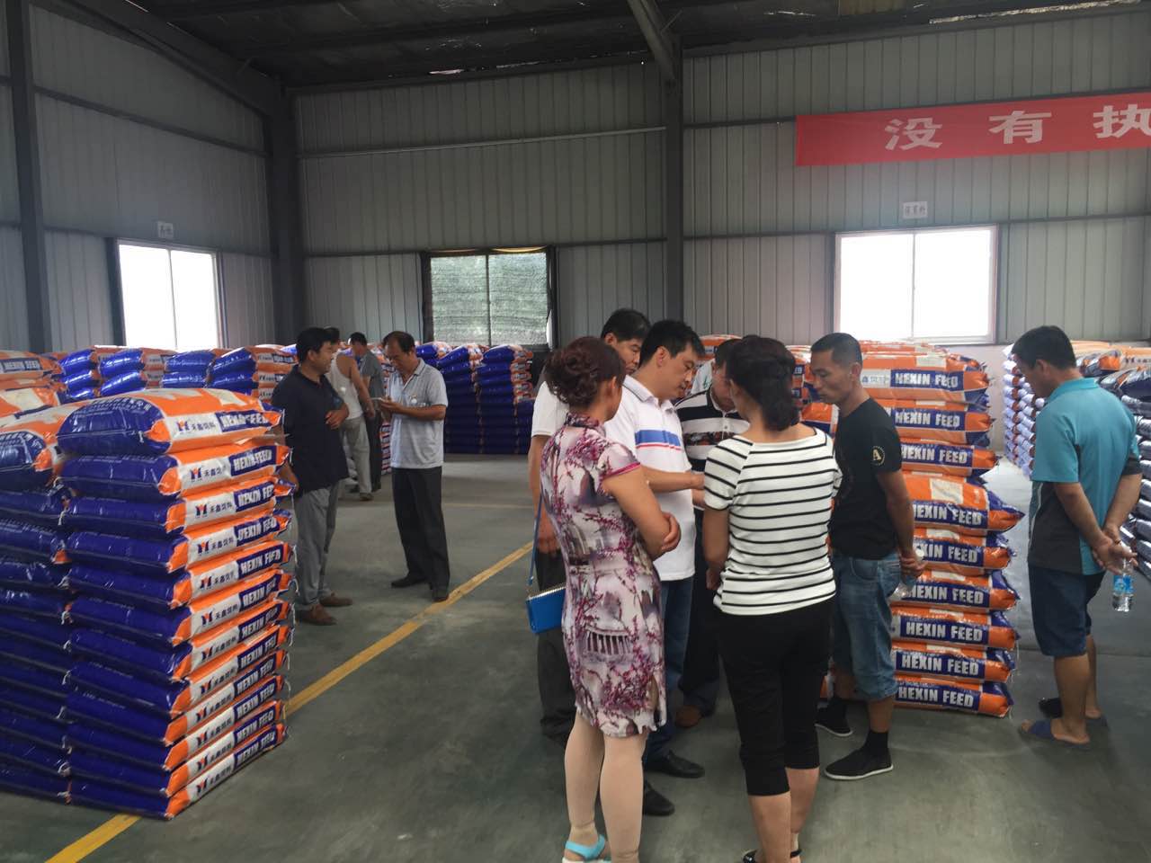 河北大寨子養殖戶(hù)來(lái)公司參觀(guān)。參觀(guān)成品庫。